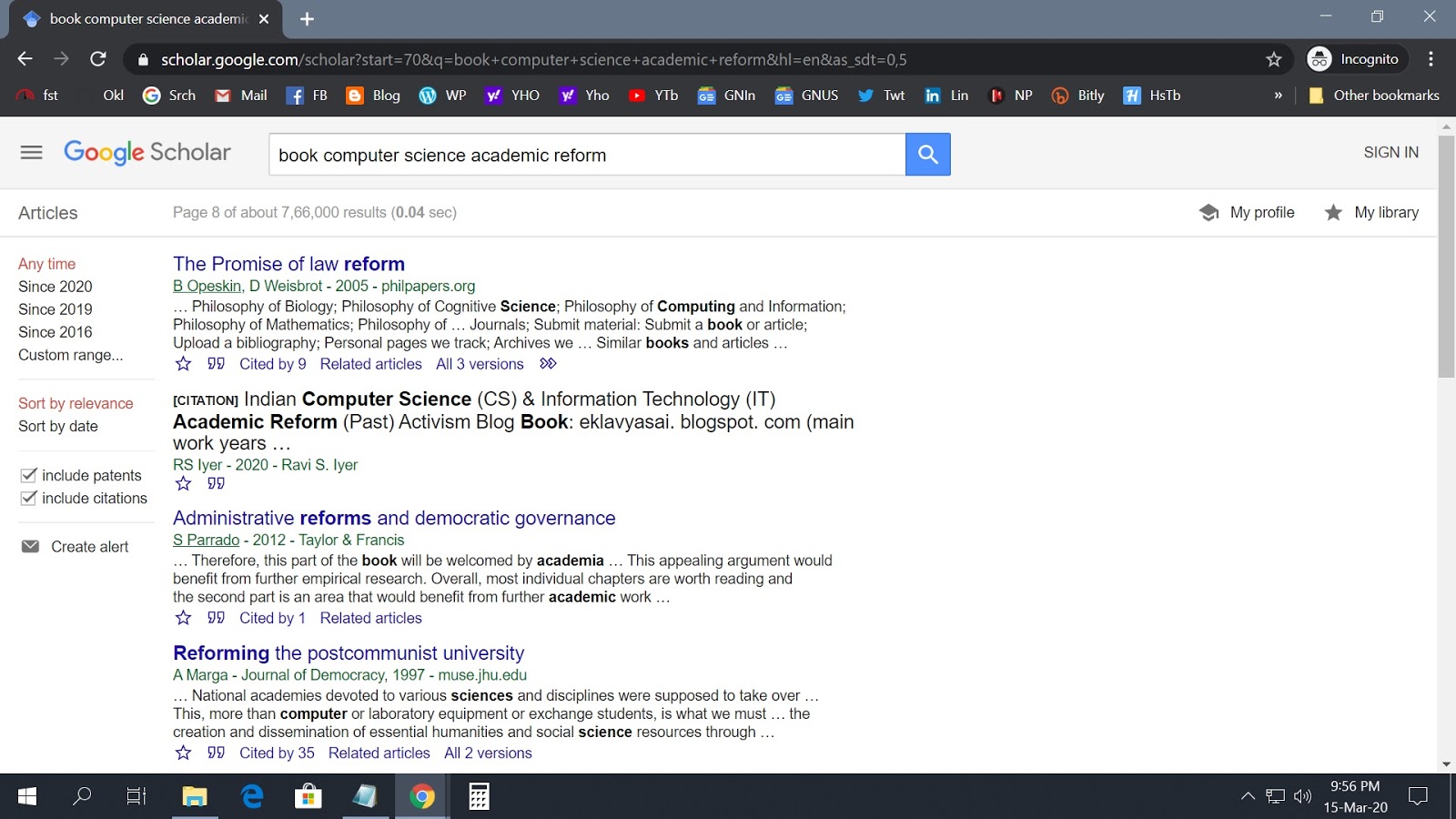 Marked improvement in result ranks for many related search terms in Google Scholar for Indian CS & IT academic reform book; Google Scholar now shows link to Google Books page of book, https://eklavyasai.blogspot.com/2020/03/marked-improvement-in-result-ranks-for.html.